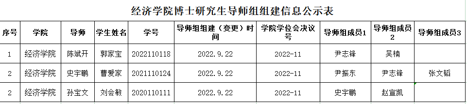 二、研究生导师组原则上应在该生学位论文开题前组建,组建后不得随意变更。学院导师组详细名单和具体信息附后,以供相互监督。研究生导师组的日常管理由研究生导师和培养单位共同负责,研究生导师作为研究生培养第一责任人的职责不变。