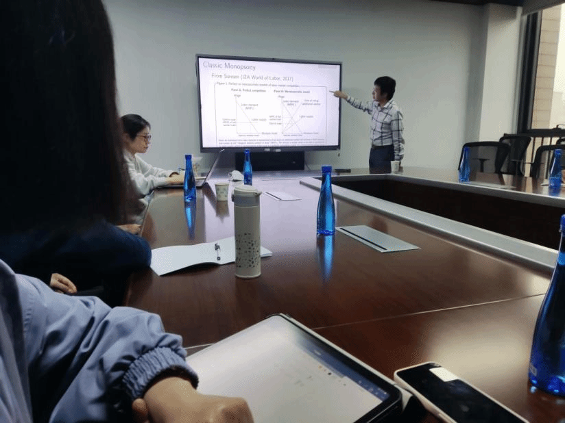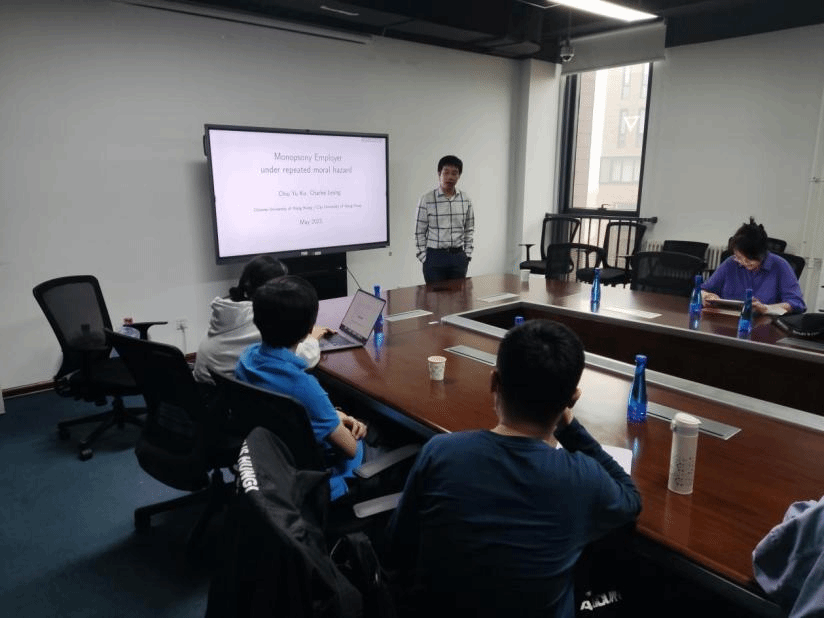 2023年5月19日14:00,香港中文大学院长聘副教授高超禹应今年会jinnianhui邀请,开展主题为“Monopsony Employer under Repeated Moral Hazard”的讲座,高超禹老师受到了老师和同学们的热烈欢迎!今年会jinnianhui黄乃静副教授主持讲座,尹振东教授,龚雅娴老师参加了讲座。