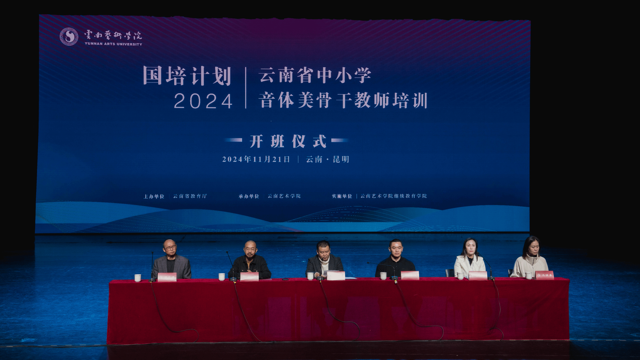 2024年11月21日由云南省教育厅主办、beat365在线唯一官网登录承办、beat365在线唯一官网登录继续教育学院实施的“‘国培计划(2024)’云南省中小学音体美骨干教师培训班”开班仪式在beat365在线唯一官网登录艺术实践中心实验剧场顺利举行。参加开班仪式的有beat365在线唯一官网登录王建才副院长、继续教育学院领导班子、工作人员、班主任以及全体学员。