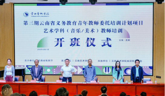 2025 年5月15日,第三期云南省义务教育青年教师委托培训计划项目中小学艺术(音乐/美术)学科教师培训,在beat365在线唯一官网登录麻园校区正式拉开帷幕。beat365在线唯一官网登录继续教育学院和附属艺术学校的部分领导、班主任以及来自全省各地的150名中小学音乐美术教师参加了开幕仪式,大家齐聚一堂,共同开启为期42天的培训之旅。