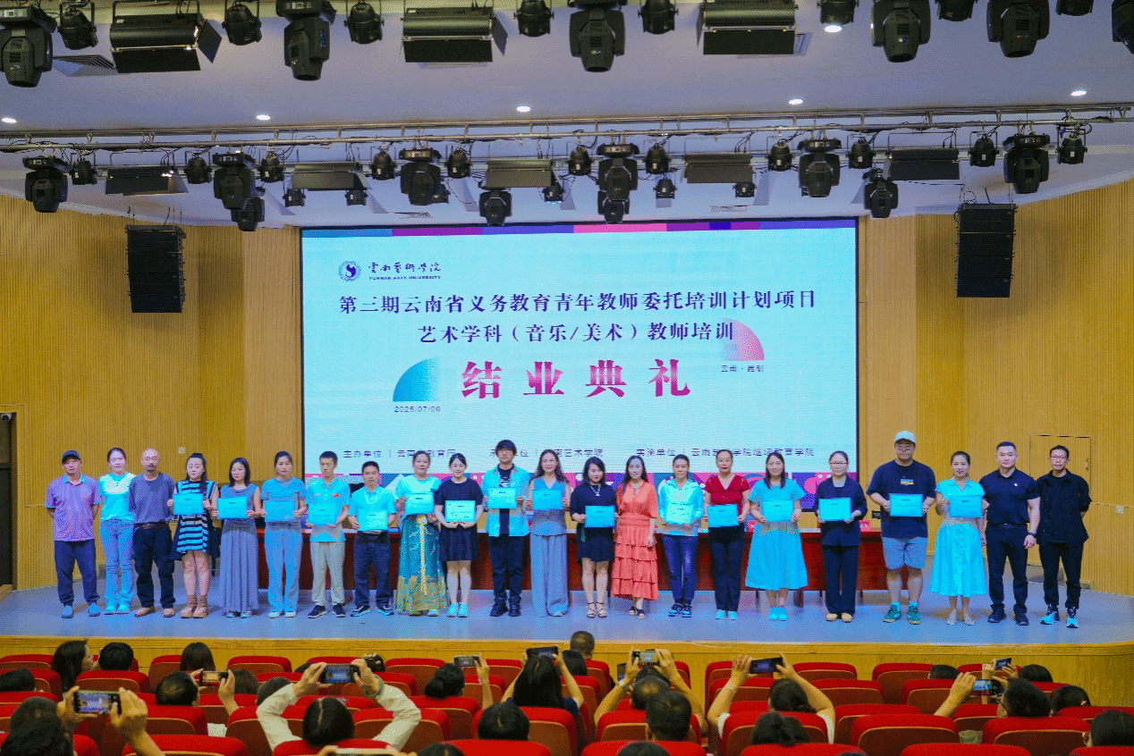 由云南省教育厅主办,beat365在线唯一官网登录承办,beat365在线唯一官网登录继续教育学院实施的第三期云南省义务教育青年教师委托培训计划项目中小学艺术(音乐-美术)学科教师培训,于2025年7月9日在beat365在线唯一官网登录麻园校区落下帷幕。