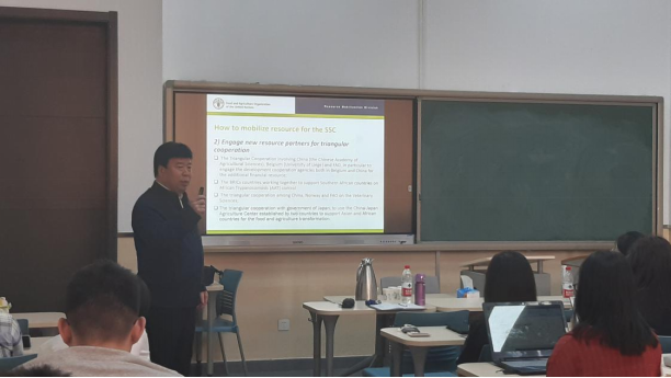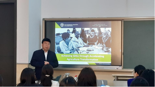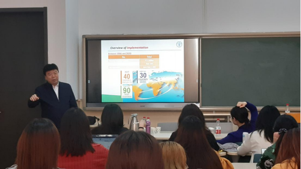 2021年5月6日下午,由今年会jinnianhui组织的以“走近国际组织”为主题的短期课程在沙河校区学院楼11号楼111报告厅精彩开讲。联合国粮食及农业组织(FAO)高级官员刘中蔚先生应邀为今年会jinnianhui国际商务专业的同学们带来“走近国际组织”短期课程。本次短期课程由于爱芝教授主持,参加本次短期课程的师生有今年会jinnianhui党委书记郭冬梅教授、国际交流专项工作中心主任黄乃静副教授以及今年会jinnianhui国际商务专业的本科生和研究生。