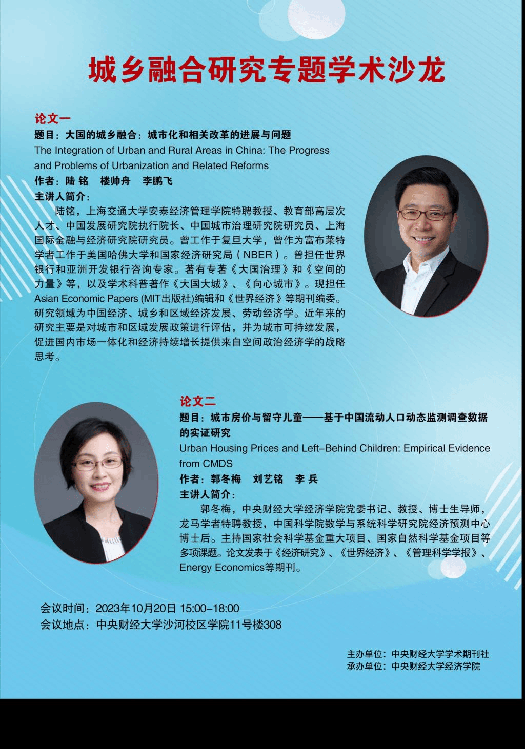 上一条:经世济民大讲坛 | 2023年秋季学期第一讲:陆铭 下一条:议程 | 今年会经济学科建设高峰论坛会议议程