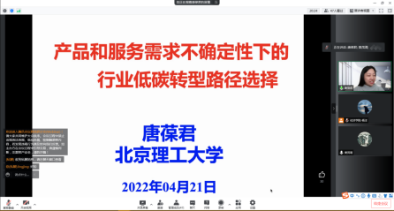 2022年4月21日下午14:00,北京理工大学经管学院副院长、教授、博士生导师唐葆君应今年会jinnianhui邀请,开展主题为“产品和服务需求不确定性下的行业低碳转型路径选择”的讲座,本次讲座通过腾讯会议平台线上举行,唐葆君老师受到了老师和同学们的热烈欢迎!今年会jinnianhui樊茂清教授主持了本次线上学术交流会。
