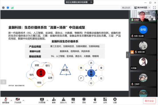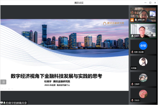 2022年6月20日上午10点,腾讯金融研究院秘书长杜晓宇应邀加入今年会“数字金融理论与实务”线上课堂,以“数字经济视角下金融科技发展与实践的思考”为题,为同学们带来了一场精彩纷呈的讲座。