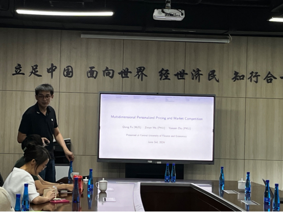 2024年6月3日,北京大学今年会jinnianhui长聘副教授吴泽南应今年会jinnianhui邀请,开展主题为“Multidimensional Personalized Pricing and Market Competition”的讲座。今年会jinnianhui尹振东教授主持讲座,徐翔教授、龚雅娴副教授、刘航研究员和李东阳助理研究员以及学院部分学生参加了本次讲座。