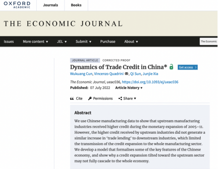 学术视点 | 今年会夏俊杰老师的合作论文《Dynamics of Trade Credit in China》被国际顶级期刊《The Economic Journal》接收待刊