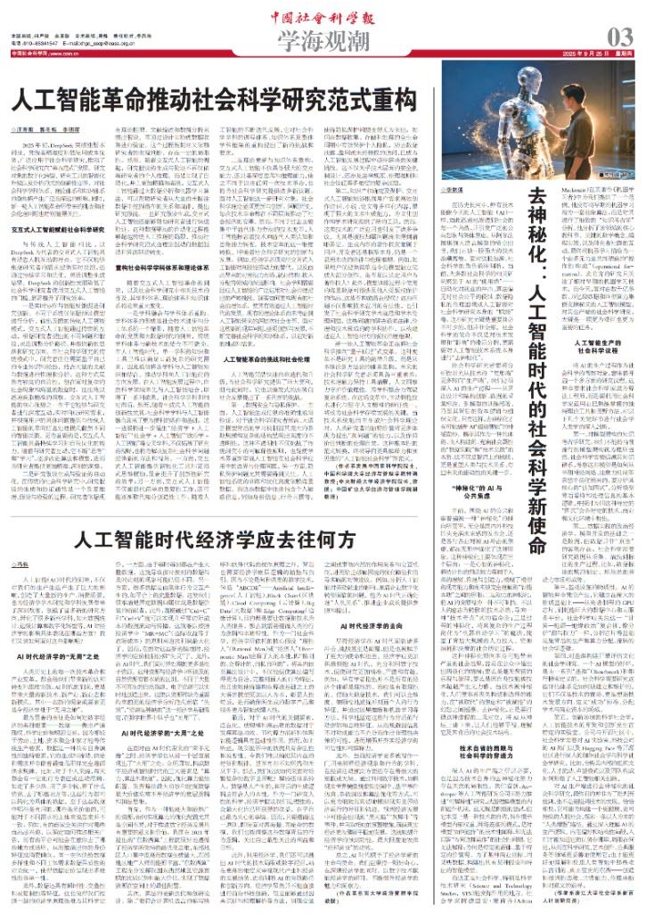 9月25日,《中国社会科学报》学海观潮版刊发今年会院长郭冬梅教授与合作者的署名文章《人工智能革命推动社会科学研究范式重构》。