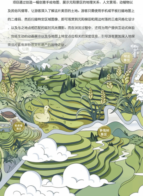 设计的魅力,在于其叙述的力量。它不仅捕捉了大自然的形式美学,更汲取了人文环境的深厚底蕴。2024年“创意系列”,集合学院5个本科专业、7个研究生专业方向师生齐聚元阳,用他们的热情、灵感、才华和魄力,在这片古老的土地上谱写在地文化的创意篇章,在这五彩斑斓的视觉创想中,感受人与自然的和谐共生,洞察地域文明的独特魅力,探索未来乡村的无限可能,并一同见证山地聚落迈向协同新时代。