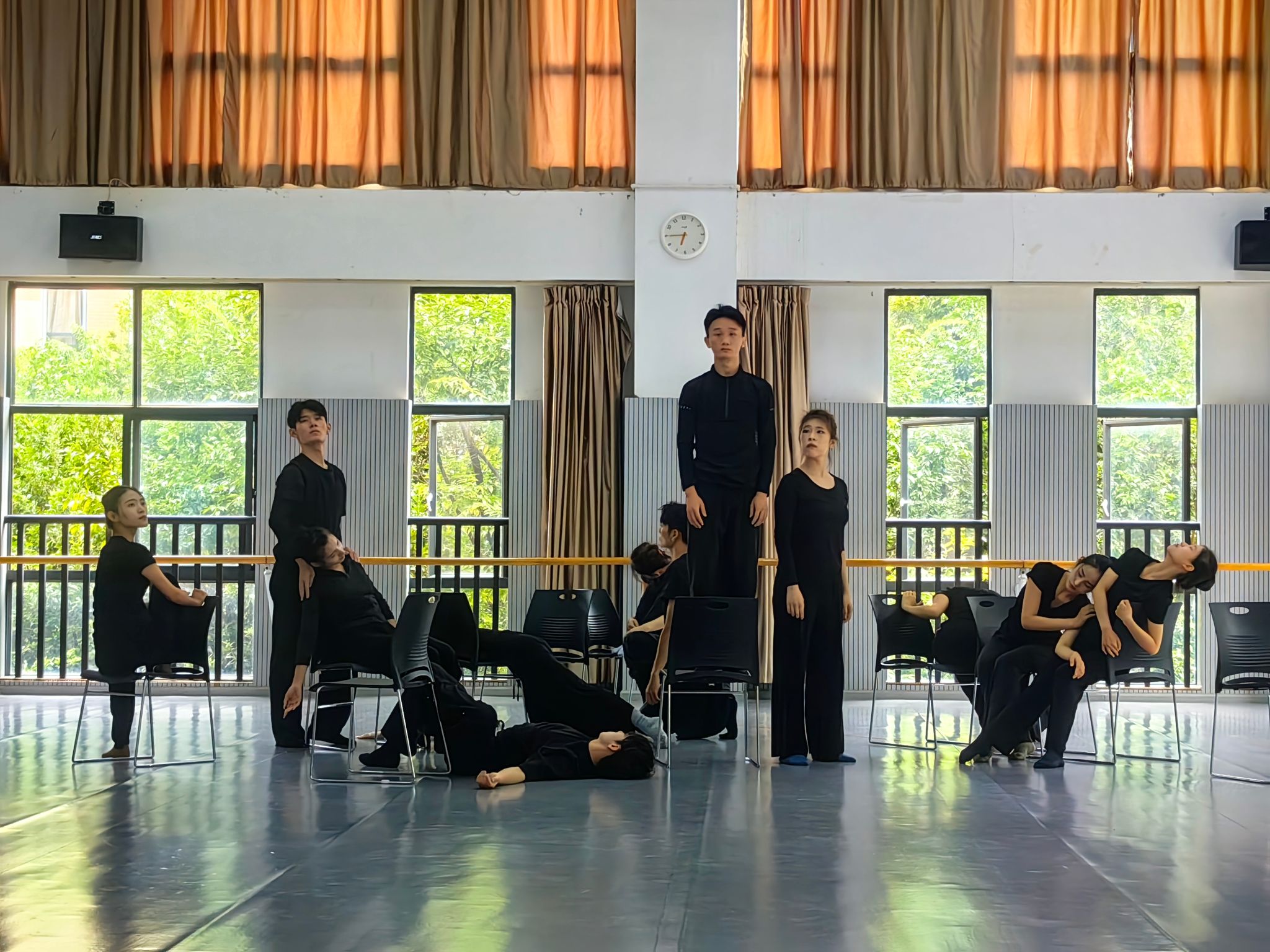 8月30日,本次国际专家工作坊举行了结课汇报。舞蹈表演专业学生表演了小组即兴创作的《最后一公里》《默》《搁浅》等主题舞段。舞蹈学院领导、青年教师和研究生观看了汇报,并与黄嘉敏教授展开交流探讨。