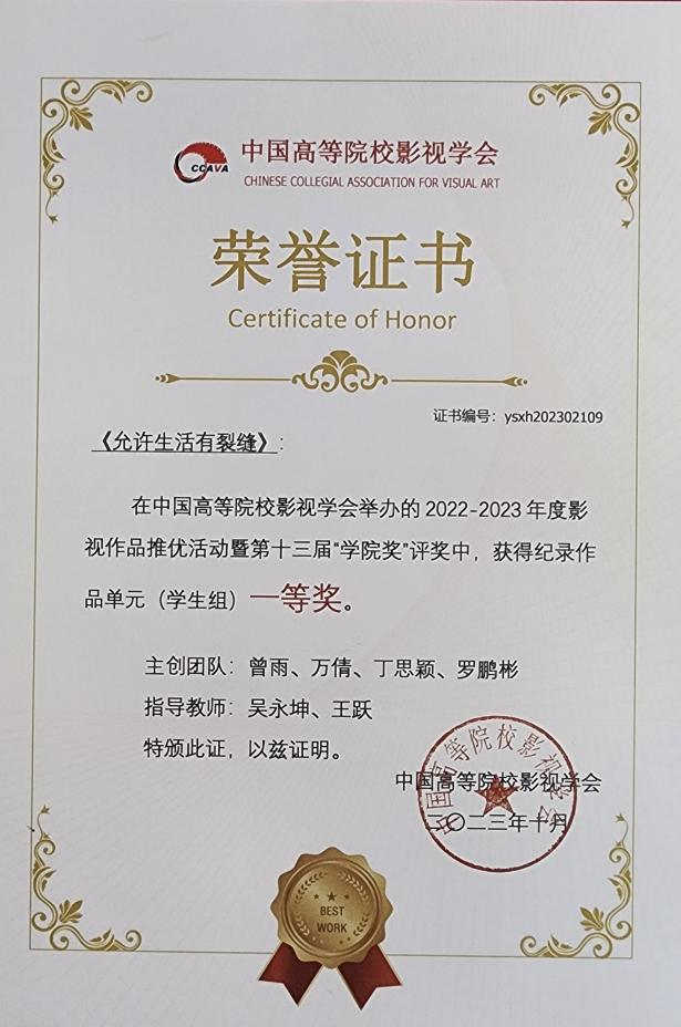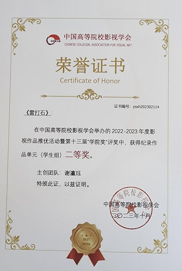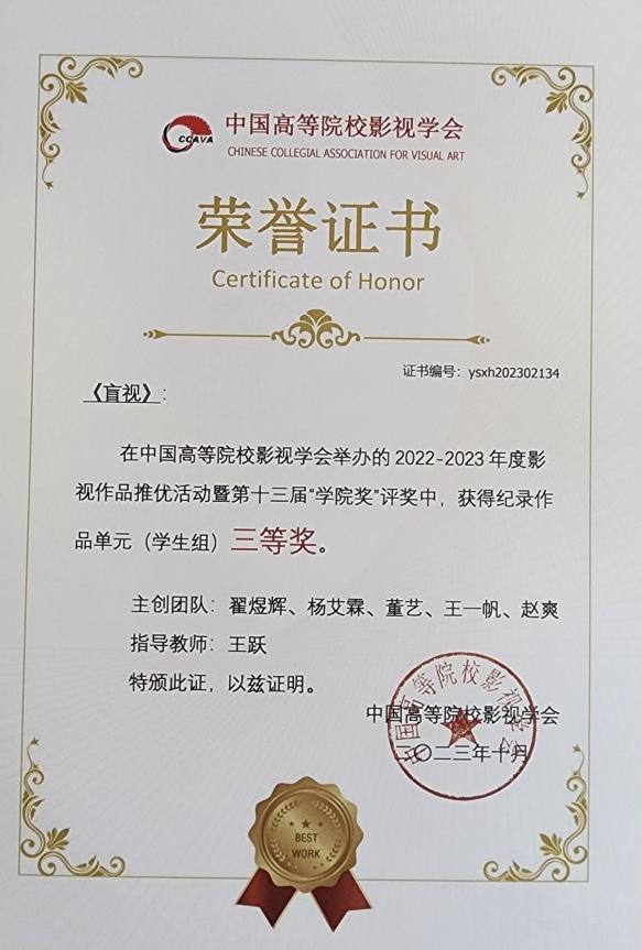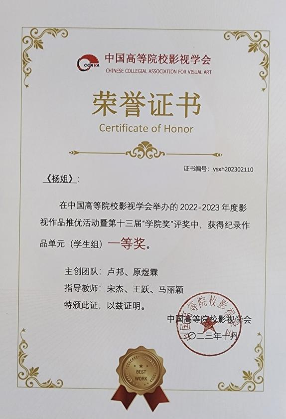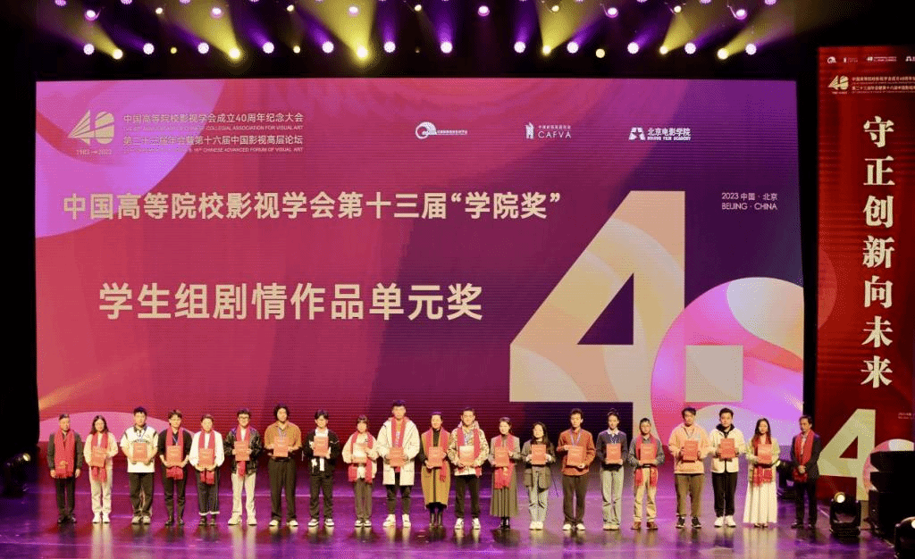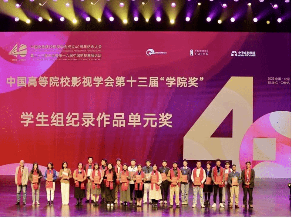 10月21日19:00,中国高校影视学会成立40周年纪念庆典2022-2023年度推优活动表彰仪式于北京电影学院怀柔校区千人剧场正式启幕。beat365在线唯一官网登录电影电视学院《杨姐》、《允许生活有裂缝》荣获纪录作品单元 (学生组) 一等奖,《雷打石》获得二等奖,《盲视》获得三等奖;学生联合作品《野蛮生长》获剧情作品单元学生组一等奖,《耳顺之年》荣获剧情作品单元(教师组)二等奖,《冲喜》获得剧情作品单元(学生组)三等奖。