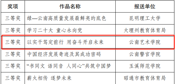为深入学习宣传贯彻习近平新时代中国特色社会主义思想和党的二十大精神,推动党的创新理论“飞入寻常百姓家”,推进大中小学思想政治教育一体化建设,2023年3-6月,省委教育工委、省教育厅举办了2023年“云岭师生说”理论宣传比赛,beat365在线唯一官网登录《以实干笃定前行 用奋斗开启未来》获语言类(学生组)三等奖,《纪年》获文艺类优秀奖。