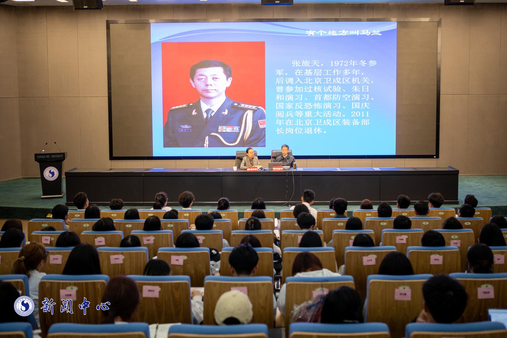 张旅天老师以《有个地方叫马兰》为题,根据自己从小跟随父亲在飞沙走石的马兰基地生活的经历,讲述了像张蕴钰少将这样的先辈们为国家核试验艰苦奋斗的过程,诠释了“艰苦奋斗、开拓创新、大力协同、无私奉献”的马兰精神。“黄沙百战穿金甲,不破楼兰终不还”这用来形容张蕴钰少将最合适不过了,张蕴钰少将说过“将鲜红的热血涂在印版上,印出光灿的国史,有此机遇何志不酬呢?”环境越是困难张蕴钰少将越是坚定,并且“甘做隐姓埋名人,勇干惊天动地业”。张旅天老师和其他核二代一样,继承了父辈们为了祖国的强大无私无畏的奉献牺牲精神,成为第二代值得骄傲的“马兰人”。