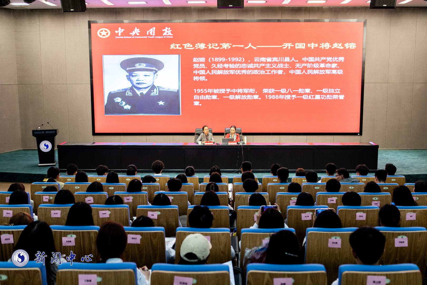 分课堂第三讲由校团委书记赵颖、宣讲团成员云南籍开国中将赵镕将军外孙女张婧菲老师主持。