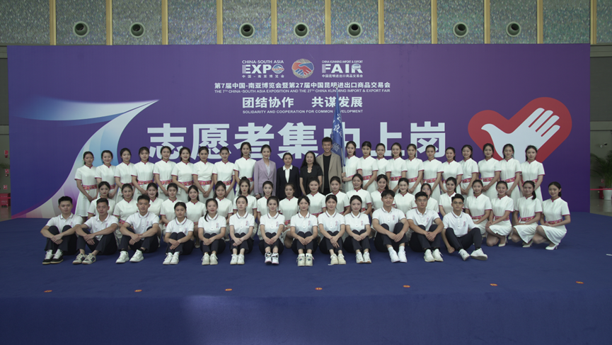 2023年8月16日,第7届中国-南亚博览会暨第27届中国昆明进出口商品博览会在滇池国际会展中心隆重开幕。受第7届南博会执委会及云南省接待办公室任务委托,beat365在线唯一官网登录选派70名大学生礼仪志愿者承担这场国际盛会的礼宾接待工作。