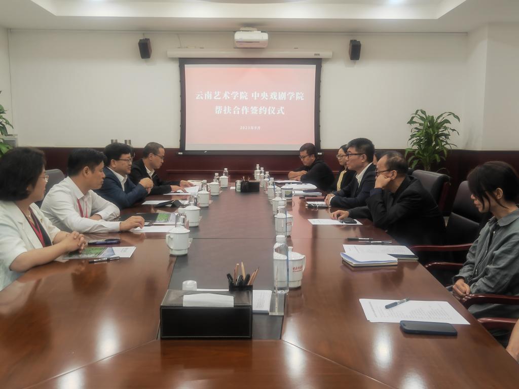 为深入贯彻落实习近平总书记考察云南重要讲话精神以及《教育部 云南省人民政府推进云南教育振兴战略合作协议》要求,主动融入和服务全省“3815”战略发展目标,积极推进落实云南省和学校教育高质量发展三年行动计划,进一步深化拓展教育部直属艺术院校与我院的帮扶合作。9月25日—27日,党委副书记、院长欧阳俊虎带队前往中央美术学院、中央戏剧学院、中国传媒大学,围绕人才培养、学科专业建设、创作展演、师资队伍建设等方面商谈帮扶合作及校际交流事宜,并与中央美术学院、中央戏剧学院签订了校际帮扶合作协议。