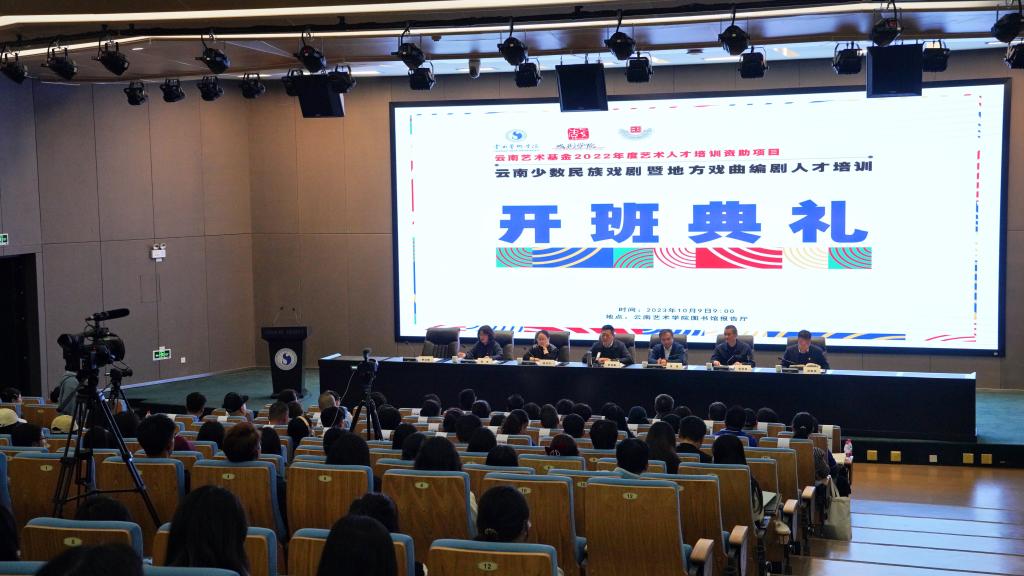 2023年10月9日上午9:00,云南艺术基金2022年度艺术人才培训资助项目 “云南少数民族戏剧暨地方戏曲编剧人才培训”开班仪式在beat365在线唯一官网登录图书馆学术报告厅举行。