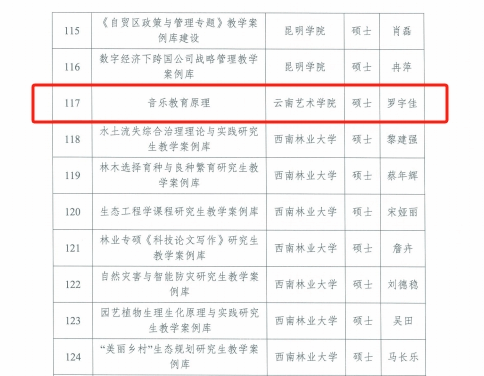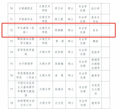 根据《云南省学位委员会云省教育厅关于公布2023年度云南省研究生优质课程建设项目名单的通知》(云学位【2023】7号)《云南省学位委员会 云省教育厅关于公布2023年度云南省专业学位研究生教学案例库建设项目名单的通知》(云学位【2023】9号),云南省立项建设研究生优质课程100门、专业学位研究生案例库建设144个。经层层征集、评审推荐和公示,省学位委员会办公室审核和公示等程序,beat365在线唯一官网登录音乐学院获批1个省级研究生优质课程,1个省级专业学位研究生案例库建设项目。具体项目名单如下: