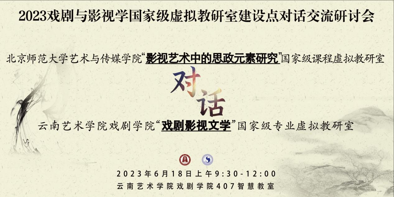 2023年6月18日上午,在beat365在线唯一官网登录戏剧学院407智慧教室,来自北京师范大学艺术与传媒学院的“影视艺术中的思政元素研究”国家级课程虚拟教研室团队与我院“戏剧影视文学”国家级专业虚拟教研室建设团队,就虚拟教研室的建设管理,课程建设、专业建设、团队建设的方法、路径和成效等展开别开生面地对话交流。