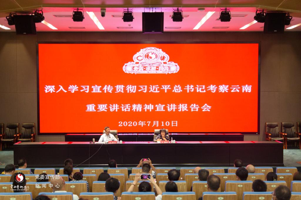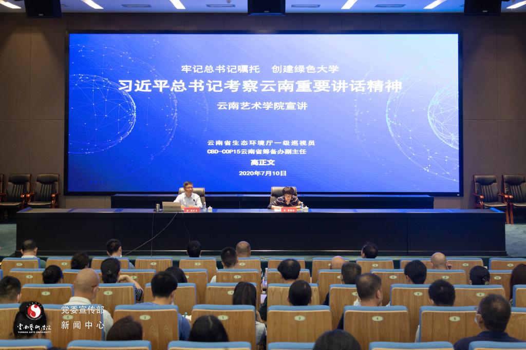 7月10日,深入学习贯彻习近平总书记考察云南重要讲话精神省委宣讲团到beat365在线唯一官网登录举行宣讲报告会,报告会由beat365在线唯一官网登录党委书记黄雁玲主持,省委宣讲团成员、省生态环境厅一级巡视员高正文作 “牢记总书记嘱托,创建绿色大学——习近平总书记考察云南重要讲话精神beat365在线唯一官网登录宣讲”。