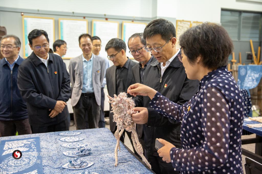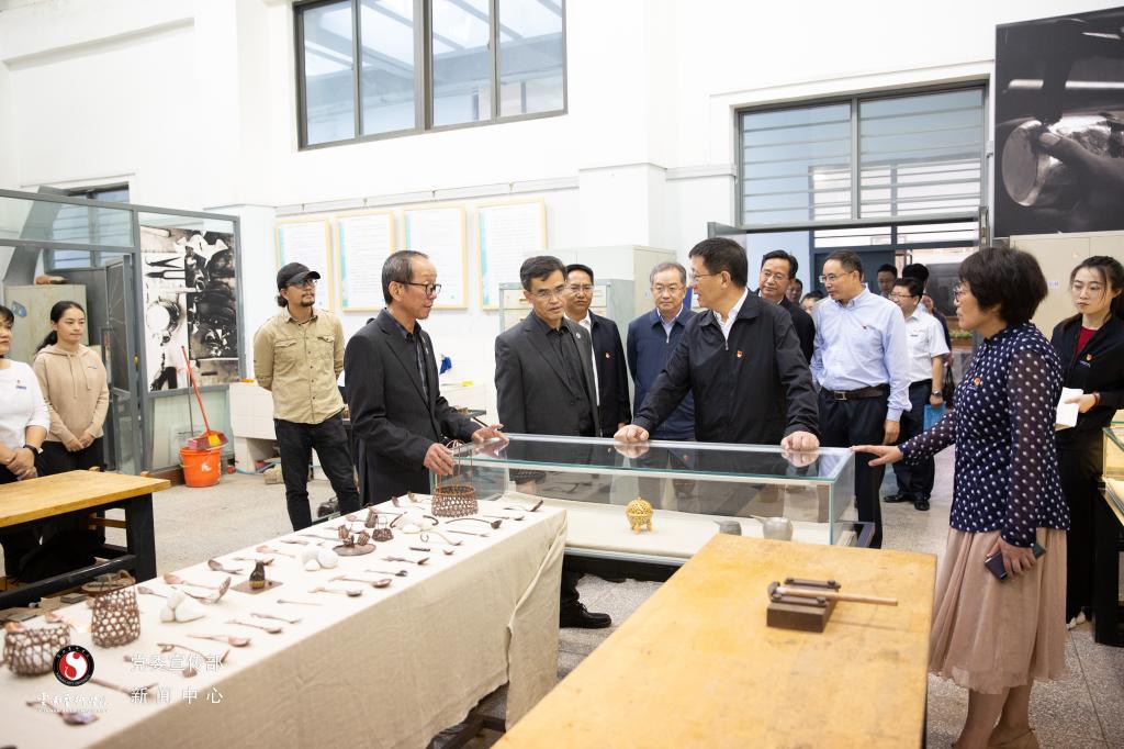 在参观课程思政成果“深入生活 扎根人民·美术学院优秀作品展”和beat365在线唯一官网登录大学生创业孵化园、大学生创新创业实训基地、家庭经济困难学生就业创业帮扶基地时,王予波副书记深入考察,与师生亲切交流相关专业市场发展前景及学生就业意愿、方向。他强调,思政建设与艺术创作有着异曲同工之妙,都是要有“情怀”的去做事情,将小我融入大我,厚植家国情怀、人民情怀、民族情怀。同时,设计与民族文化传承、文旅产业的发展结合也十分密切,希望同学们能够在学校练就一身本领,在省委省政府的政策支持下,自主创业,大有作为。