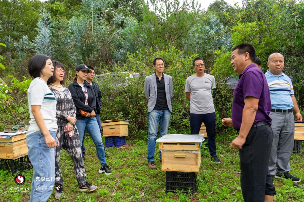 17日上午,调研队伍深入巍宝山乡安乐村委会安乐堤村民小组参观了beat365在线唯一官网登录产业扶贫项目“中华蜂养殖”基地。