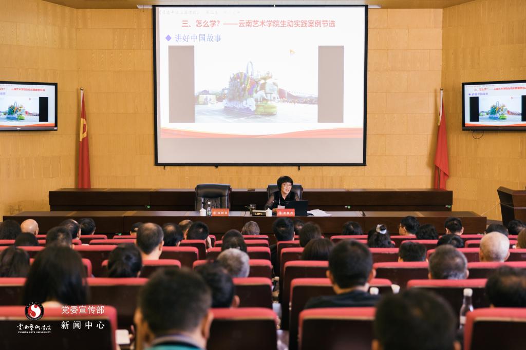 同时与我校的实践案例生动地结合在一起,从九个方面得出如何解决“为什么学”问题的启示,即原原本本学、深入思考学、联系实际学,认为学校应统筹思政课程和课程思政建设,把思想政治工作贯穿教育教学全过程,充分发挥艺术类高校专业优势,实现思政整治工作和专业教学同频共振、相互促进,落实好立德树人根本任务。最后她强调,艺术工作者要具有责任感、使命感,用国家的文化历史、革命历史、建党历史的最好展现来回报这份职责感。