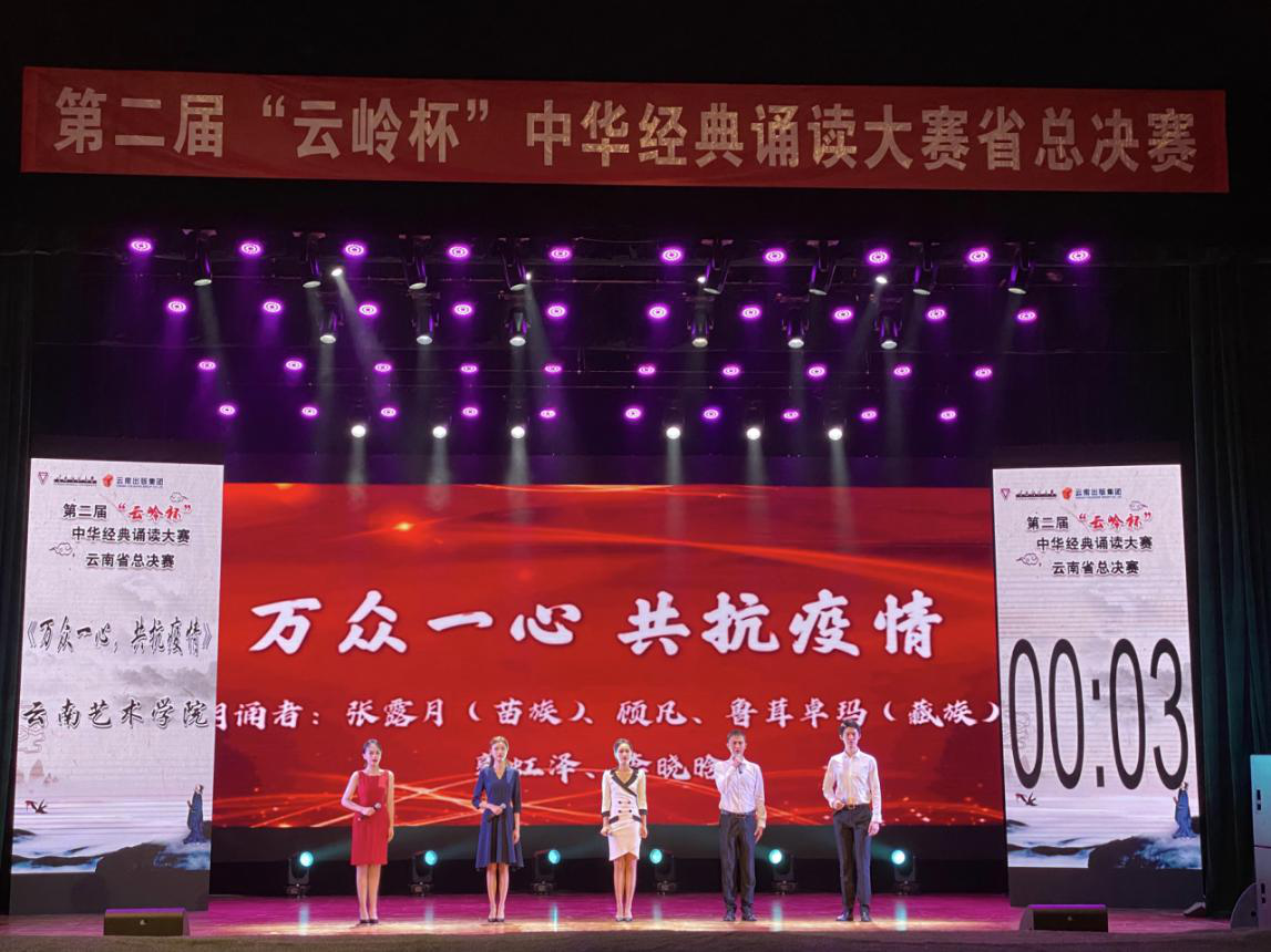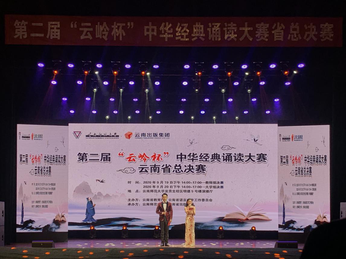 为提高全民语言文字规范意识和应用能力,传承弘扬中华优秀传统文化,彰显中华语言与文化魅力,深入挖掘中华经典所蕴含的民族正气、爱国精神、道德情怀和艺术魅力,引领中华经典教育发展,展示大学生及教师对中华经典作品的精彩诵读与传播,在全社会营造浓郁的经典诵读氛围。由云南省教育厅、云南省语言文字工作委员会联合主办的,云南师范大学、云南省出版集团联合承办的云南省第二届“云岭杯”中华经典诵读大赛总决赛于2020年9月20日在云南师范大学呈贡主校区明德5号楼演播厅隆重举行。