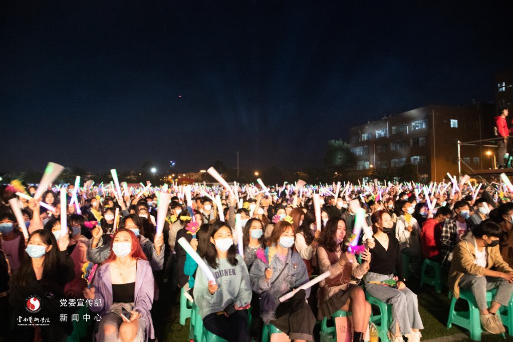 晚会由GooGee乐队歌曲表演《给你看》《Astronomia》,民歌新唱《蝴蝶纷飞》,《背对背拥抱》和《空心》等节目拉开序幕。由戏剧学院《Dance party》、高职学院原创歌曲《穿行巴拉云雾》、影视学院舞蹈秀《Dream of youth》、设计学院歌曲串烧《追梦赤子心》、舞蹈学院彝族女子群舞《乌蒙礼赞》戏剧学院诗朗诵《万众一心 共抗疫情》、校级学生组织学生干部歌曲《坚信爱会赢》、艺文学院舞蹈串烧《燃烧的色彩》、美术学院影子戏《战“疫”》、舞蹈学院舞蹈《幸福的脚步》、音乐学院、高职学院歌舞《花开新时代》等精彩绝伦的演出组成。灵动的舞姿、自然的演绎,在现场音乐与灯光的带动下,全场观众拍手欢呼,一次又一次点燃现场氛围。
