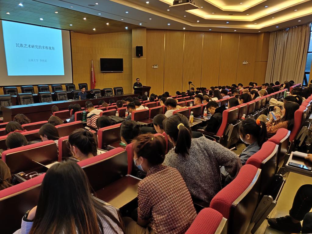 beat365在线唯一官网登录设计学院于2020年9月25日19:00—21::00在行政楼114会议室顺利举办,本次邀请云南大学民族学与社会学学院李世武教授开展主题为“民族艺术研究的多维视角”的讲座。出席本次讲座的主要有设计学院副院长万凡老师、教学管理科李卫兵老师、各专业教师、设计学院全体硕士研究生和部分本科生。讲座从艺术人类学的研究切入,获得师生一致好评。