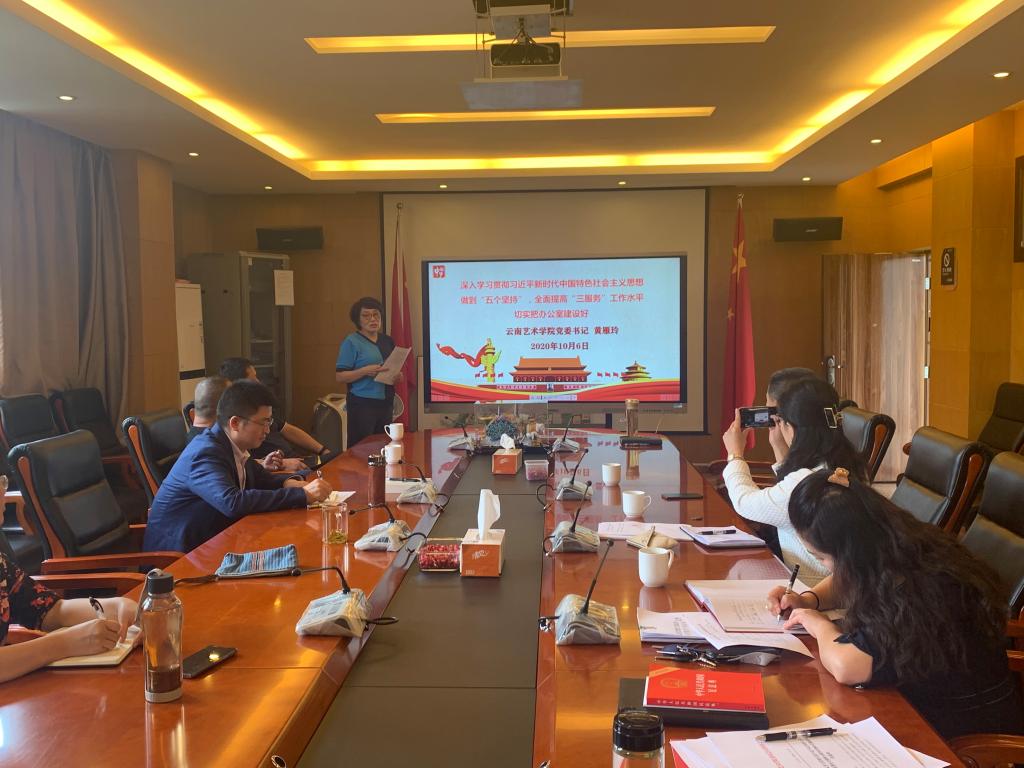 2020年10月6日下午,beat365在线唯一官网登录党委书记黄雁玲同志为办公室(党委巡察办)直属党支部全体党员上了一堂主题为“深入学习贯彻习近平新时代中国特色社会主义思想,做到‘五个坚持’,全面提高‘三服务’工作水平,切实把办公室建设好”的党课。