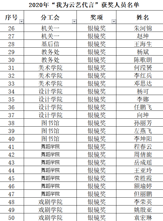 金镜奖、银镜奖获奖名单如下: