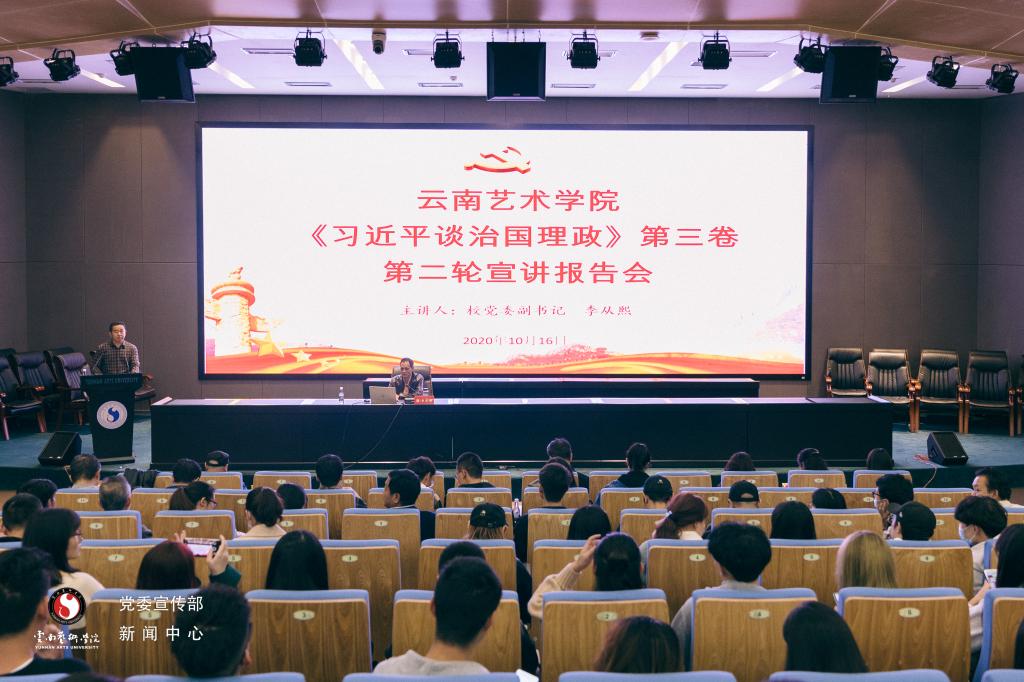 10月16日14:00,beat365在线唯一官网登录《习近平谈治国理政》第三卷第二轮宣讲报告会在学校图书馆报告厅举行。校党委副书记李从熙进行了题为“全面系统 突出重点——深入学习《习近平谈治国理政》第三卷”的宣讲。学校各二级党组织、基层党支部书记、宣传委员,组织部、宣传部、团委、工会全体教师,设计学院全体教工党员、副科以上干部及100名学生党员代表参加了此次活动。