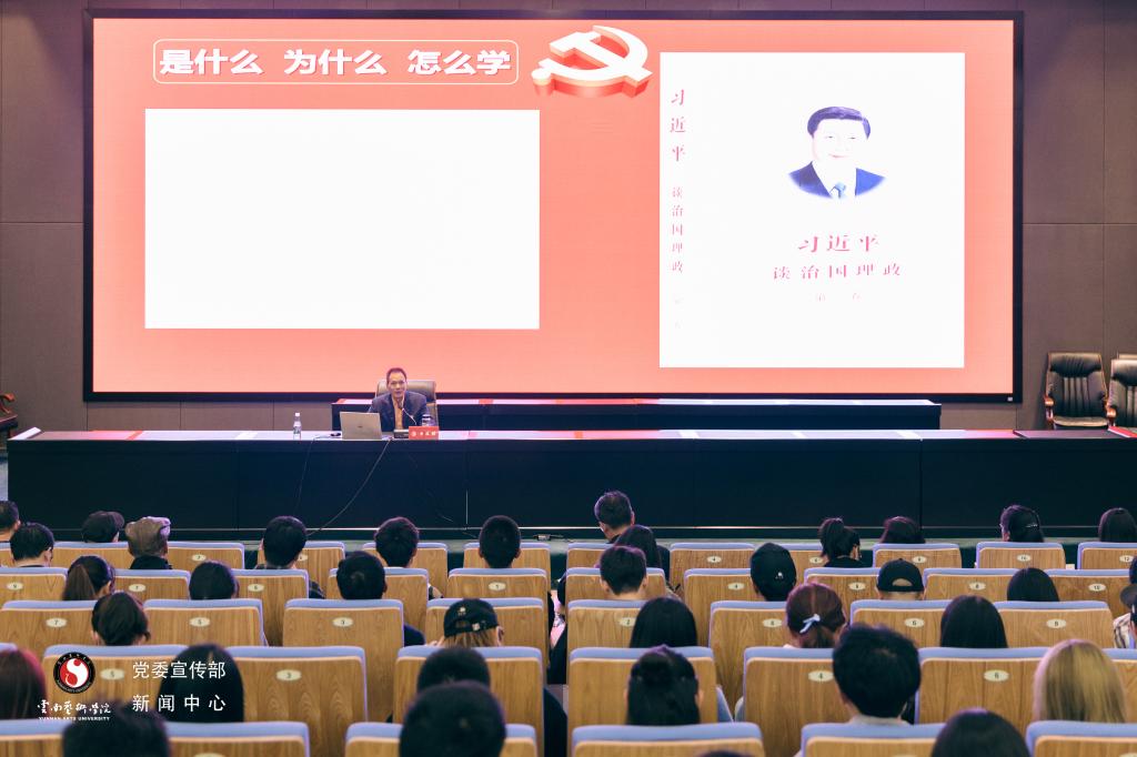 李从熙副书记从“是什么”“为什么”“如何学”三个方面深入浅出的对《习近平谈治国理政》第三卷进行了全面解读,他认为,《习近平谈治国理政》第三卷生动记录伟大实践,集中展示最新成果,充分体现智慧方案,是全面系统权威的著作。在学习过程中要全面系统学,深入思考学,联系实际学,完整准确把握第三卷映射的实践逻辑和蕴含的理论逻辑。结合高等教育历史使命,从我校办学实际出发,要突出重点深入学习理解习近平教育思想文艺思想即习近平总书记关于教育工作、文艺工作、文化建设的重要论述。为坚定文化自信,牢固树立“职责所在”“履职所需”“价值所求”的观念,主动担当作为。