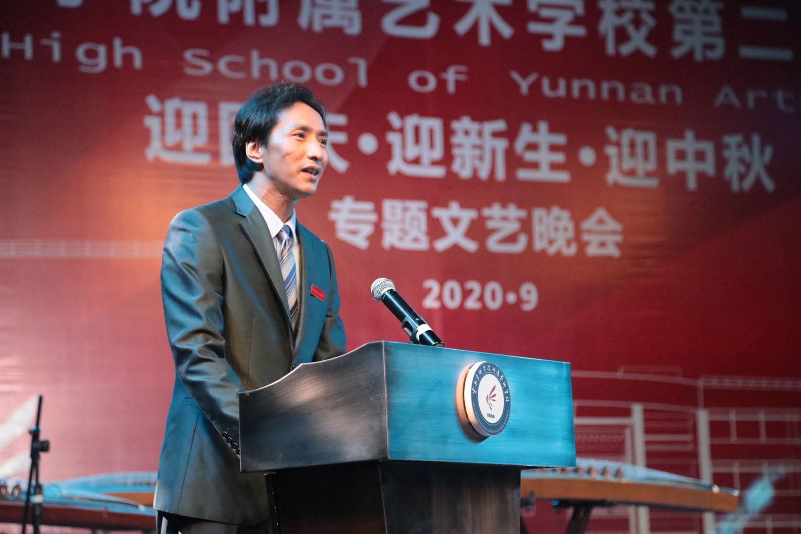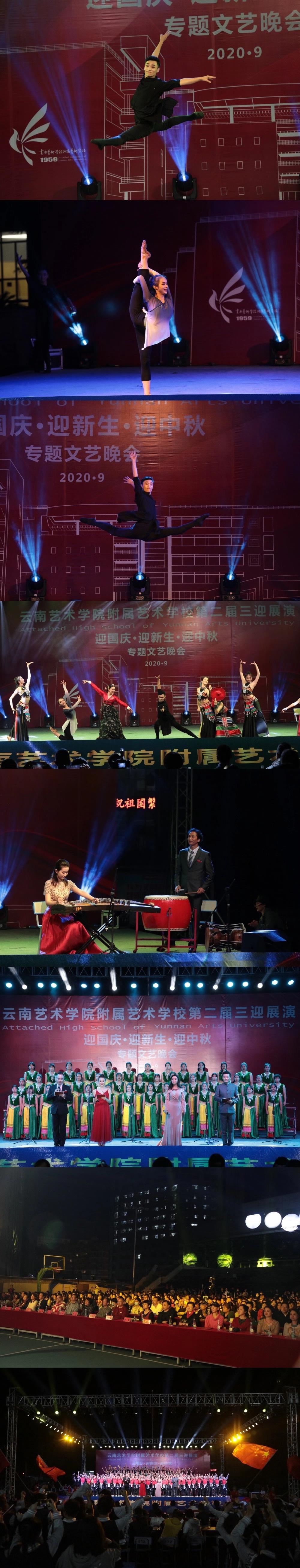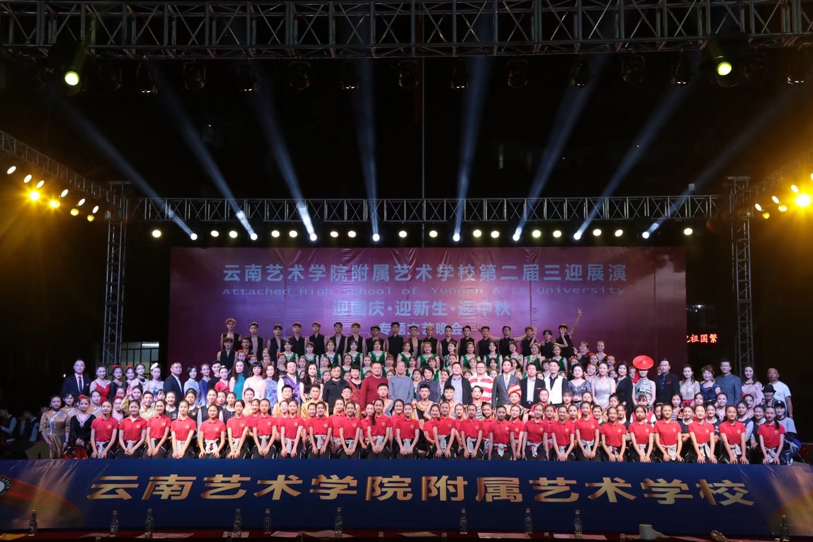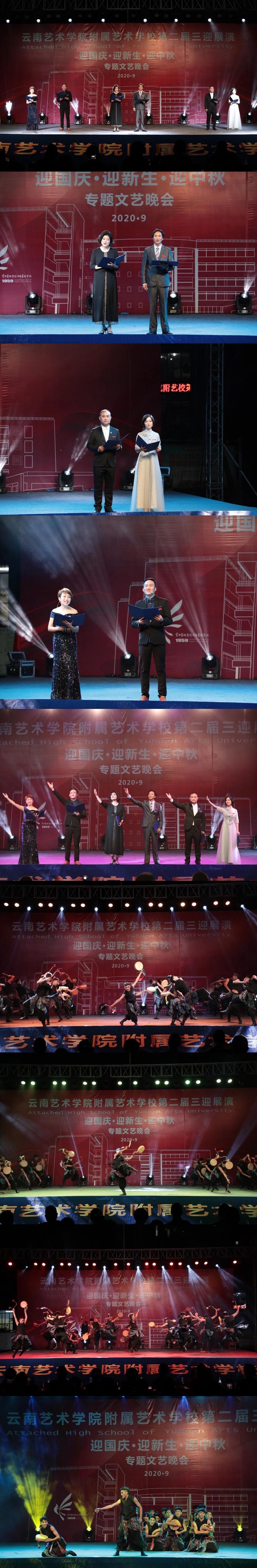 整场晚会在祥和欢乐的氛围中圆满结束, 黄雁玲书记、郭浩校长上台对所有演职人员表示慰问。黄雁玲书记表示,晚会上附艺校的学子用自己在校的学习收获为我们呈现了一场非常精彩的文艺晚会,让我们看到了云南艺术教育未来的希望,看到了每一个附艺校孩子们的成长。希望附艺校的学子们在祖国国庆71周年的伟大日子里,搭上祖国高速发展的列车,为伟大祖国的发展做出应有的贡献,同时祝愿附艺校的师生们国庆、中秋“双节”快乐,阖家幸福。
