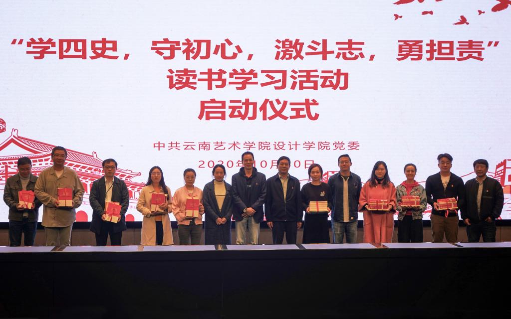 在设计学院2021年云南“红”、生态美、民族情——建党100周年主题文化创意活动来临之际,设计学院党委紧紧围绕教学中心工作,将党建工作融入师生思想政治教育工作中,于2020年10月30日在图书馆报告厅举行“学四史,守初心,激斗志,勇担责”读书学习活动的启动仪式。beat365在线唯一官网登录党委副书记李从熙应邀出席、设计学院党政领导和各党总支、党支部党员师生参加活动,活动由设计学院党委副书记王进主持。