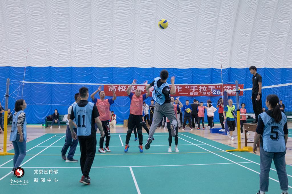 下午,高校基层党建工作“手拉手”活动——群团“联动”气排球友谊赛在beat365在线唯一官网登录气膜体育馆举行。结对共建院校本着“友谊第一,比赛第二”的原则,展开了激烈的对决。每一次的的攻守交替都引来场下观众的呐喊声,赛场上各代表队运动员顽强拼搏、团结协作呈现了一场场精彩的比赛,赢得场边观众的阵阵喝彩。