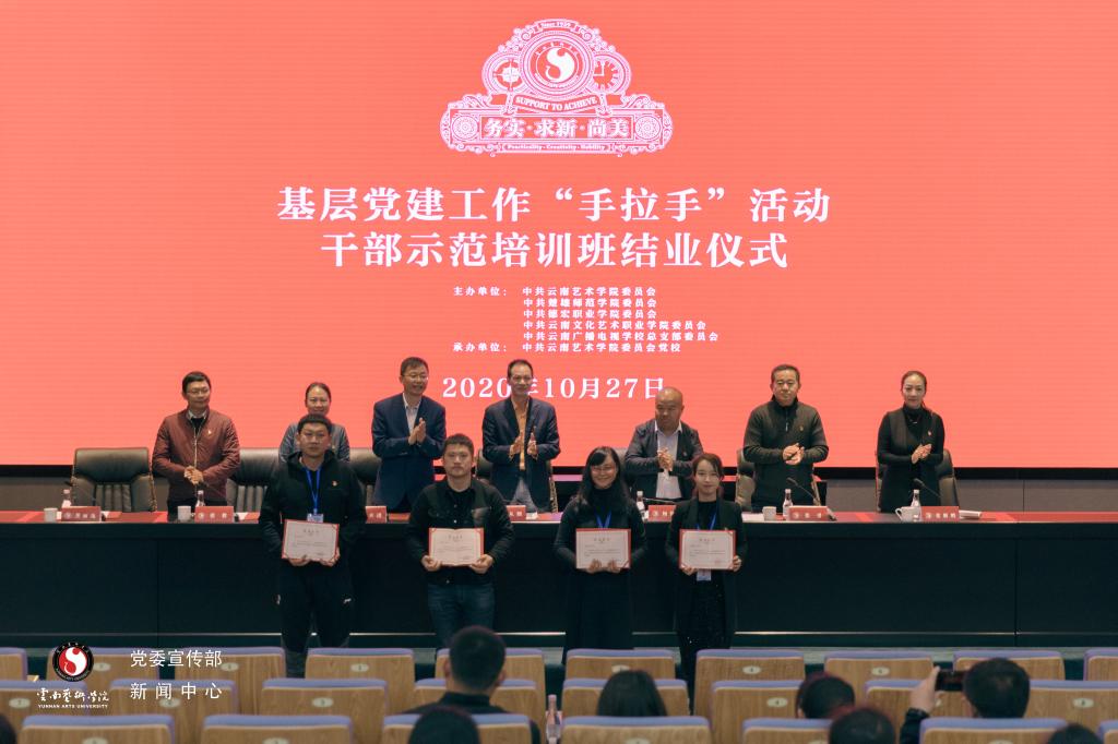 下午,2020年基层党建工作“手拉手”活动暨干部示范培训班结业仪式在图书馆报告厅举行。楚雄师范学院教师代表陈文、德宏职业学院教师代表汤果怡、云南文化艺术职业学院教师代表张觅、beat365在线唯一官网登录教师员代表朱丽霞依次发言。现场颁发了结业证书。