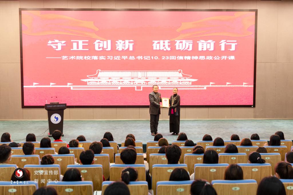 我校党委委员、党委宣传部部长、校党委党校副校长张勇,马克思主义学院全体教师、各二级学院学生代表近200人现场聆听了思政课,全国多所艺术院校师生通过beat365在线唯一官网登录官方直播间线上同步进行了课程学习。本次活动由马克思主义学院院长付梅主持。