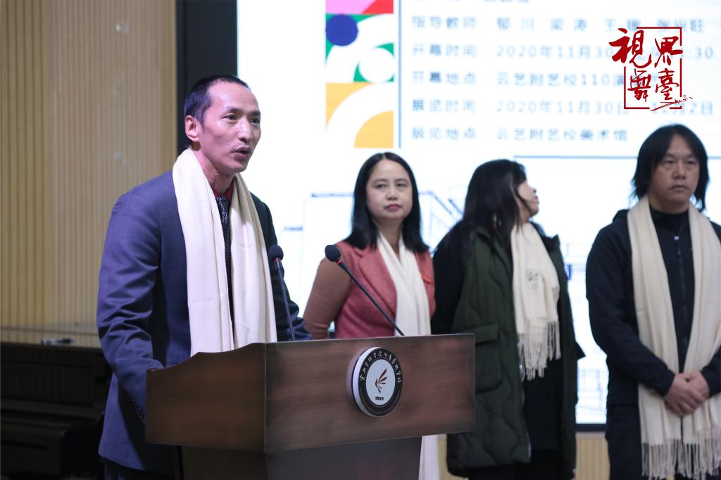 附艺校樊腾发书记宣布2021届设计画作展开幕