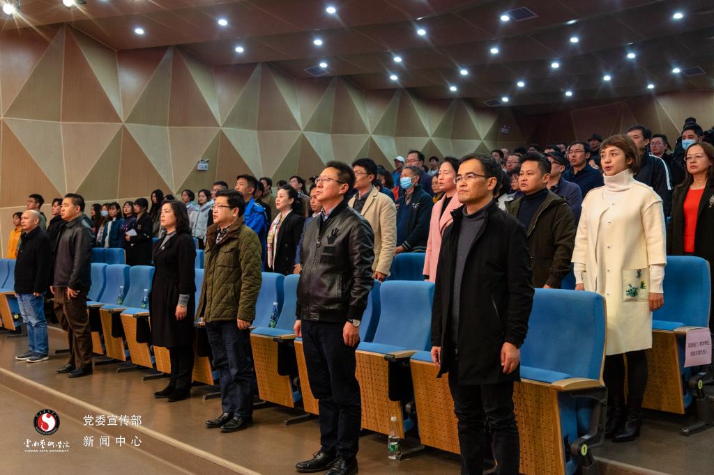 当天下午,云南省社科联党组成员、副主席王建华以“从中美两国的竞争深刻认识国家治理体系和治理能力建设的重要意义”为题,为云艺广大师生作了专题报告。报告对比分析了中美制度及治理体系和治理能力,并指出,繁荣和发展中国特色哲学社会科学,要按照立足中国、借鉴国外、挖掘历史、把握当代,关怀人类、面向未来的思路,紧紧围绕“举旗帜、聚民心、育新人、兴文化、展形象”的使命任务,着力构建中国特色哲学社会科学,在指导思想、学科体系、学术体系、话语体系等方面充分体现中国特色、中国风格、中国气派。他指出,高校担负着为国家未来建设培养人才的历史重任,高校社科联在改革、创新和发展中应该牢记使命担当,增强“四个意识”,坚定“四个自信”,做到“两个维护”,加强社会主义核心价值观的教育实践,着力提升高校社科联工作质量,为繁荣和发展云南哲学社会科学工作作出积极的贡献。
