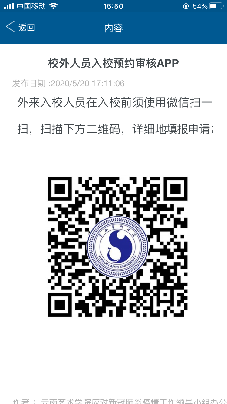 (1)识别入校二维码“ ”,选择日期及部门,预约时间选“2020年12月14日、15日”,联系部门选“人事处”。