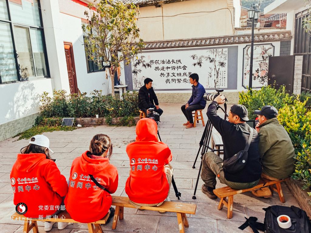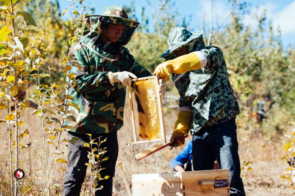 为记录产业发展进程,反映扶贫成效,2020年12月8日——11日,校党委委员、宣传部部长张勇带领侯赟老师及新闻中心学生记者一行6人赴巍宝山乡开展调研拍摄工作。全面了解学院支持的中华蜂养殖产业扶贫项目发展情况,记录摇(收)蜜实况,拍摄村镇发展影像。