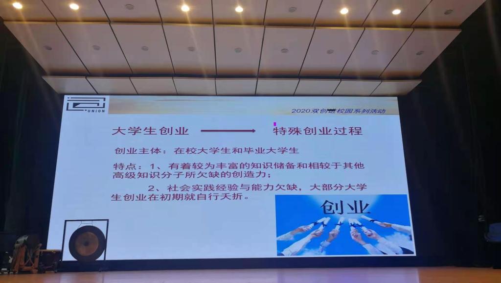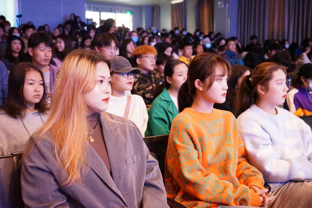 马正良老师的讲授以“创意·创新·创业”为主题,用诙谐幽默的语言分享了他心怀梦想、追逐梦想、引燃青春的奋斗历程,引发现场观众的强烈共鸣。他还以情感故事为喻,引发同学们对于创业要素的思考,使同学们对创新创业有了更深层次的理解。