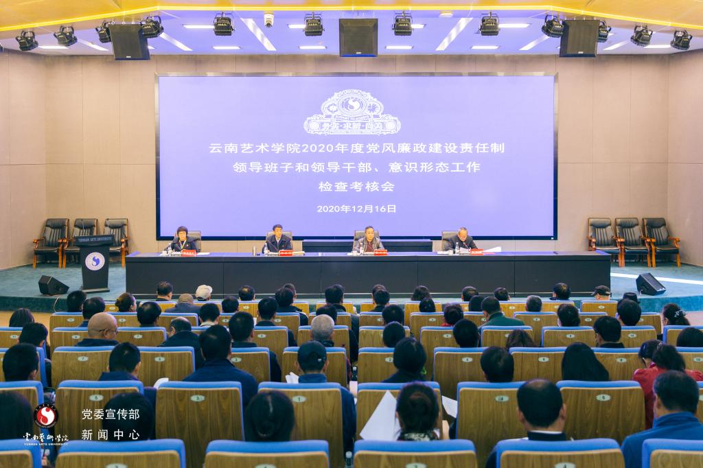 2020年12月16日,beat365在线唯一官网登录2020年度党风廉政建设责任制、领导班子和领导干部、意识形态工作检查考核会在我校图书馆报告厅召开。省委教育工委第九考核组领导班子和领导干部年度考核组组长、云南师范大学党委副书记张玮,党风廉政建设考核组组长、云南民族大学纪委书记李毅以及考核组全体成员出席会议。学校党政领导班子、各职能部门负责人、专家学者以及教职工代表参加了会议。会议由我校党委副书记、院长郭浩主持。