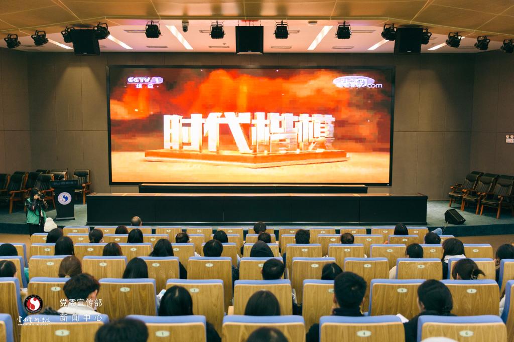 全体师生通过大屏幕收看了央视网录制的《时代楷模发布厅》朱有勇、张桂梅的先进典型事迹发布会。在场的师生被视频中一件件感人的故事、一幕幕动人的场景、一段段引人深思的对话深深吸引着,安静有序地收看了两个完整的发布会视频。
