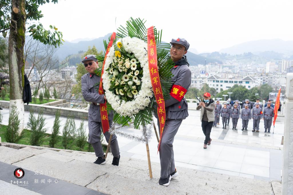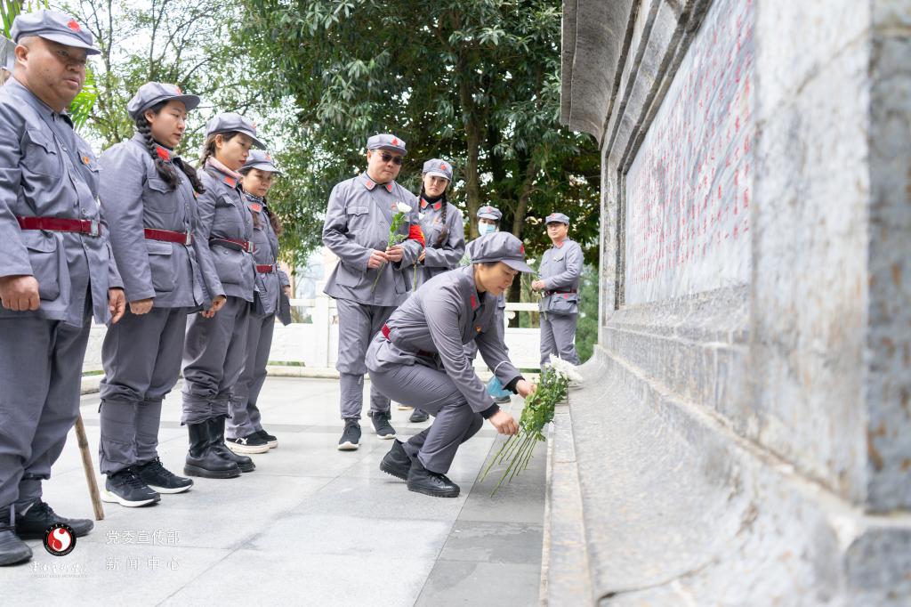 在扎西红军烈士陵园中,学员们听取了中共川南特委和川滇黔边区游击纵队烈士的感人故事。红军主力北上后,由中共中央在扎西组建的中共川南特委和红军川南游击队,及其发展领导的红军云南游击支队,坚持敌后武装斗争12年,2000余名干部战士几乎全部牺牲,为中国革命作出了不可磨灭的贡献,为老区人民留下了“信念坚定、不怕艰苦、意志顽强、团结奋斗”宝贵的红军长征扎西精神。听着现场教学老师的讲述,学员们无不为艰苦卓绝的长征历史肃然起敬,向红军烈士纪念碑敬献花圈并重温入党誓词,并表达了对革命先烈的缅怀和崇敬之情。