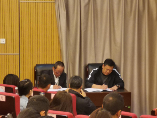 校党委黄雁玲书记代表院综治委、维稳委与各综治维稳责任单位代表签订《beat365在线唯一官网登录平安创建工作责任书》。