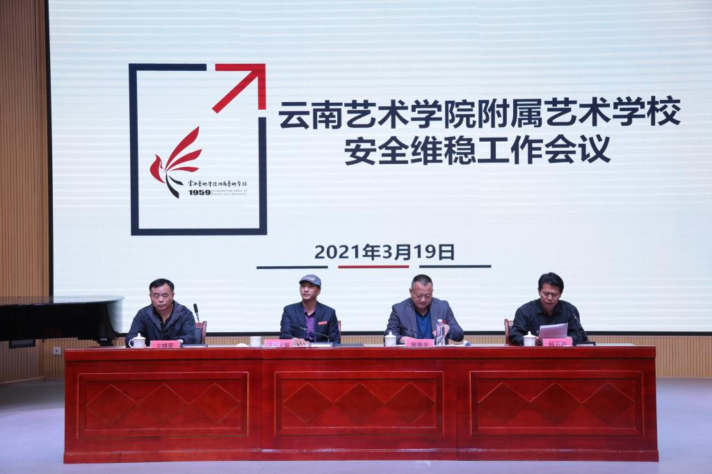 为深入贯彻落实习近平总书记关于国家安全和安全生产的重要论述、云南省2021年学校安全稳定工作会议及beat365在线唯一官网登录2021年安全维稳工作会议精神,建设平安和谐美丽幸福校园,2021年3月19日下午,附艺校在110演播厅召开2021年校园安全维稳工作会议。农布七林校长、樊腾发书记、杨石有副书记、王晓军副校长,科级干部、班主任、校卫队员、宿管人员、食堂人员、学生治安大队及部分学生代表共计300余人出席会议。本次会议由杨石有副书记主持会议。