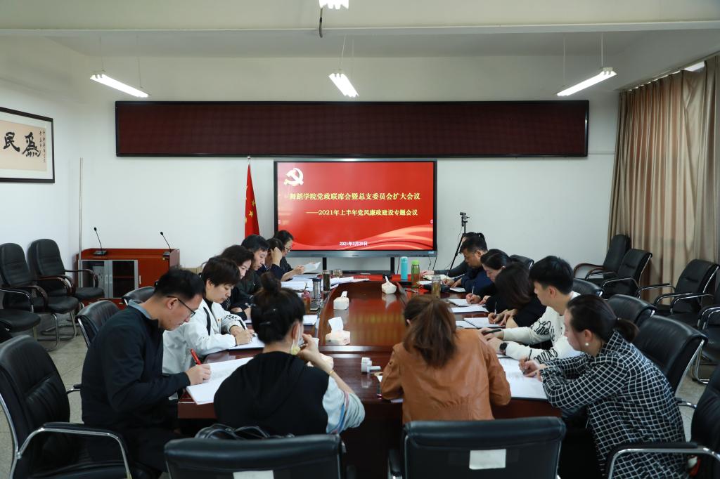 为全面贯彻落实中央关于全面从严治党和党风廉政建设的决策部署和工作安排,按照学校关于党风廉政建设工作要求和部署, 2021年3月29日上午,舞蹈学院召开舞蹈学院党政联席会议暨党总支委员会扩大会议——2021年上半年党风廉政建设专题会议。舞蹈学院党政班子成员,党总支委员,副科以上干部,参加会议,校纪委书记姜玉海同志作为联系舞蹈学院工作的校领导参加了此次会议,会议由舞蹈学院党总支孟文书记主持。